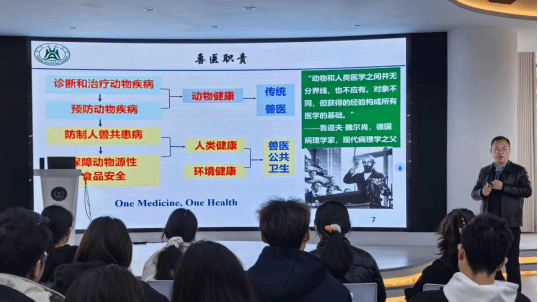 面对全球挑战,栗教授指出人群增长、气候变化、跨境旅行等因素正打破疾病传播边界。他以结核病为例,强调跨国协作的重要性。本次讲座深化了师生对兽医公共卫生的认知,展现了跨学科协作在保障全球健康中的核心价值。